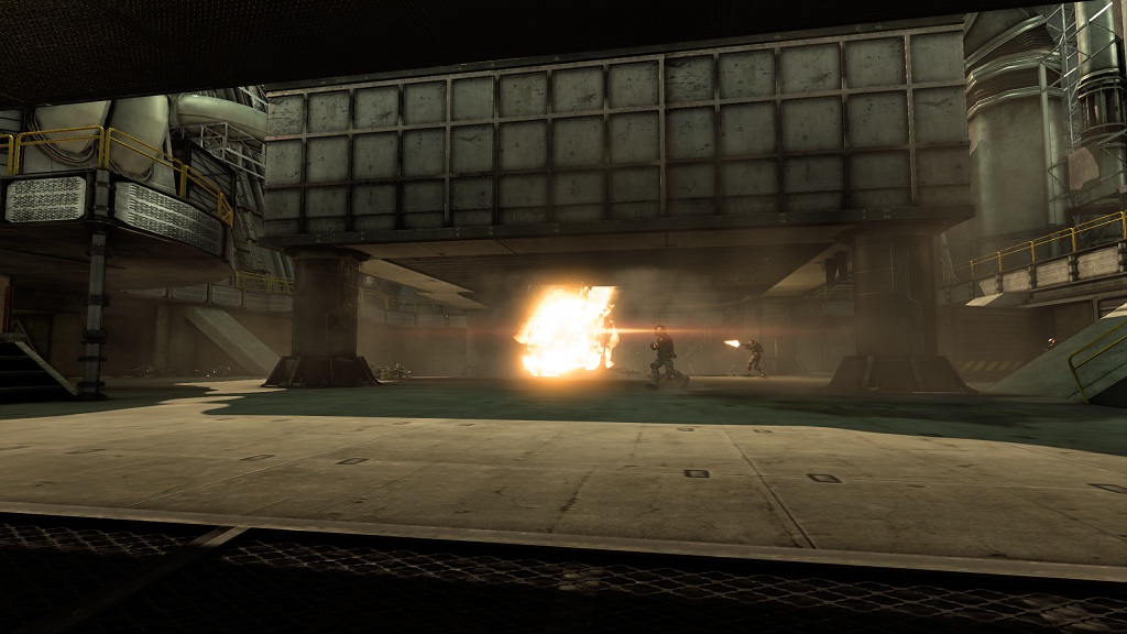 наличия множества балок и колон которые мешают стрельбе. Лифты разбросаны по