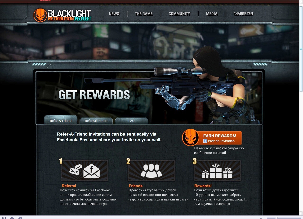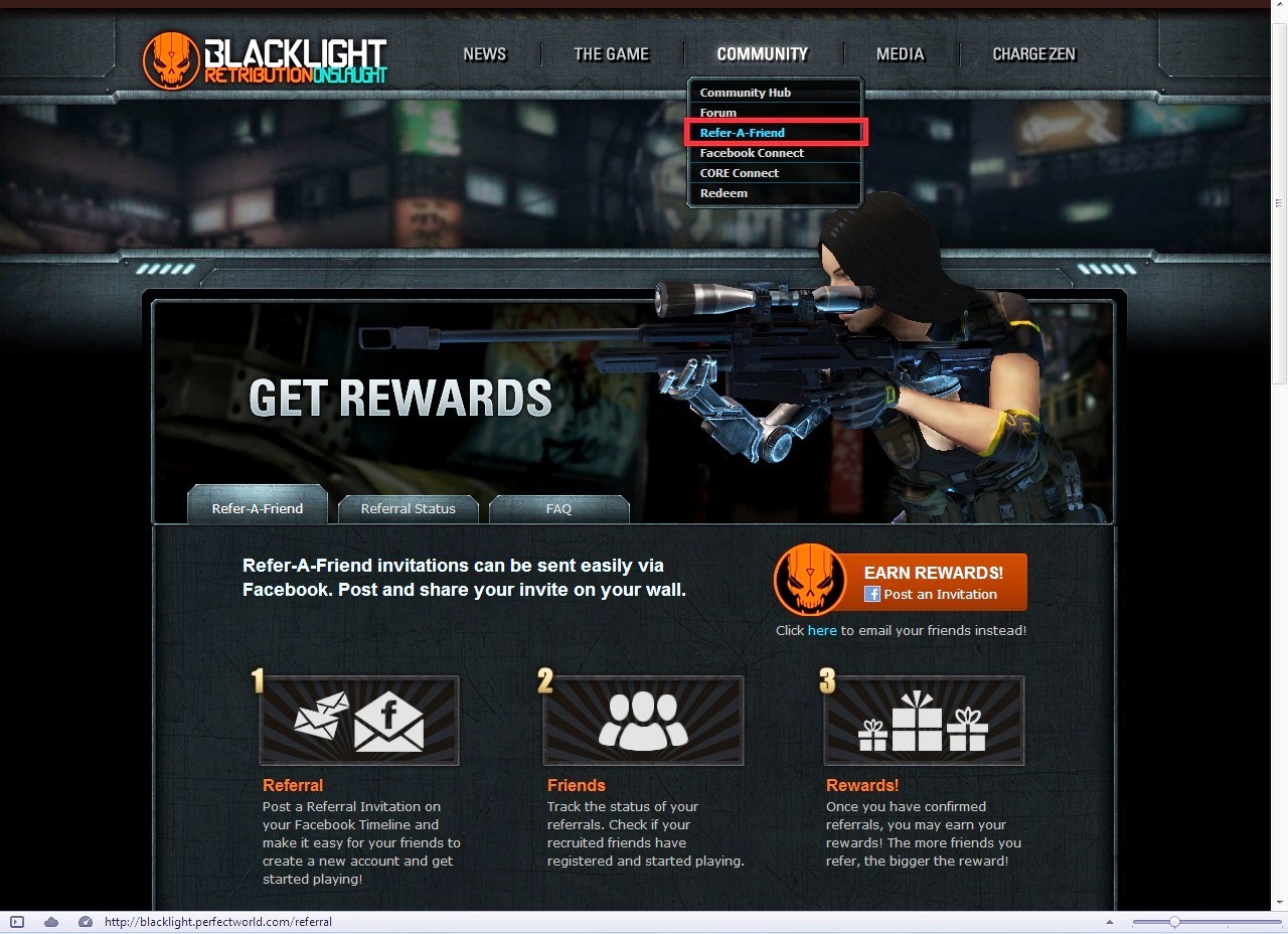 Что бы зайти в и начать приглашение друзей достаточно посетить сайт игры http://blacklight.perfectworld.com/и перейти по ссылке как указанно на скриншоте